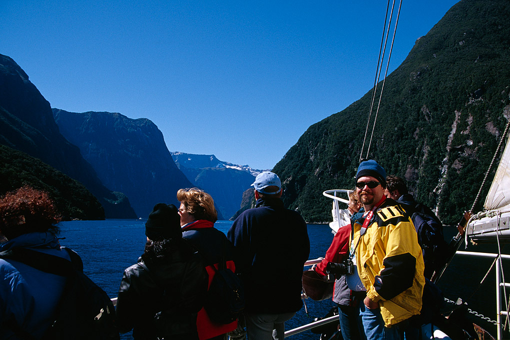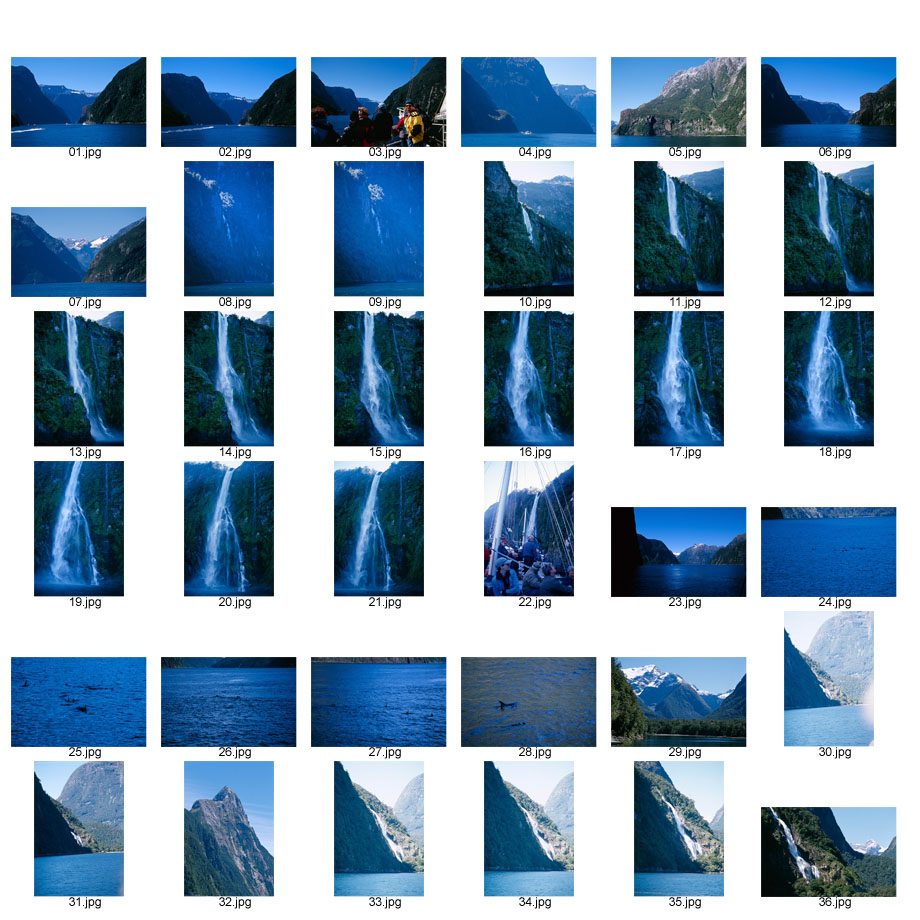 All 36 frames were taken on the boat on Milford Sound, on the way back in from the Tasman Sea turnaround. Donn is the guy in the yellow jacket in frame 3. Frames 10 through 21 are all of some waterfall that was pouring off one of the walls; I just kept snapping away until we finally passed it. I think my favorite shot is 14. Frame 18 shows it the most full-on.